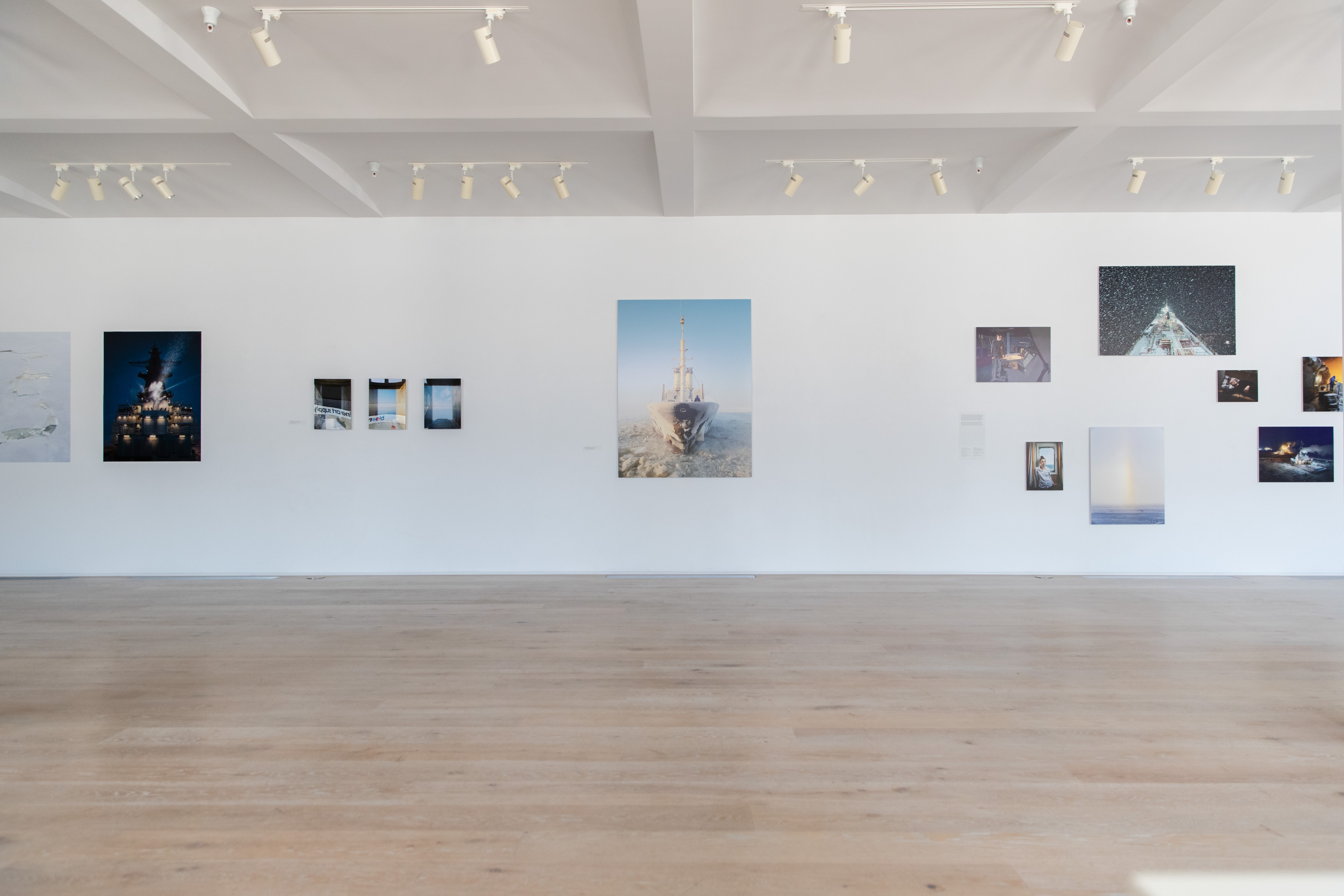 In this installation, portraits were kept small for a sense of scale, one where humans are vulnerable to the frozen ocean. They are dwarfed by the imposing machinery of the ships required to navigate it all.