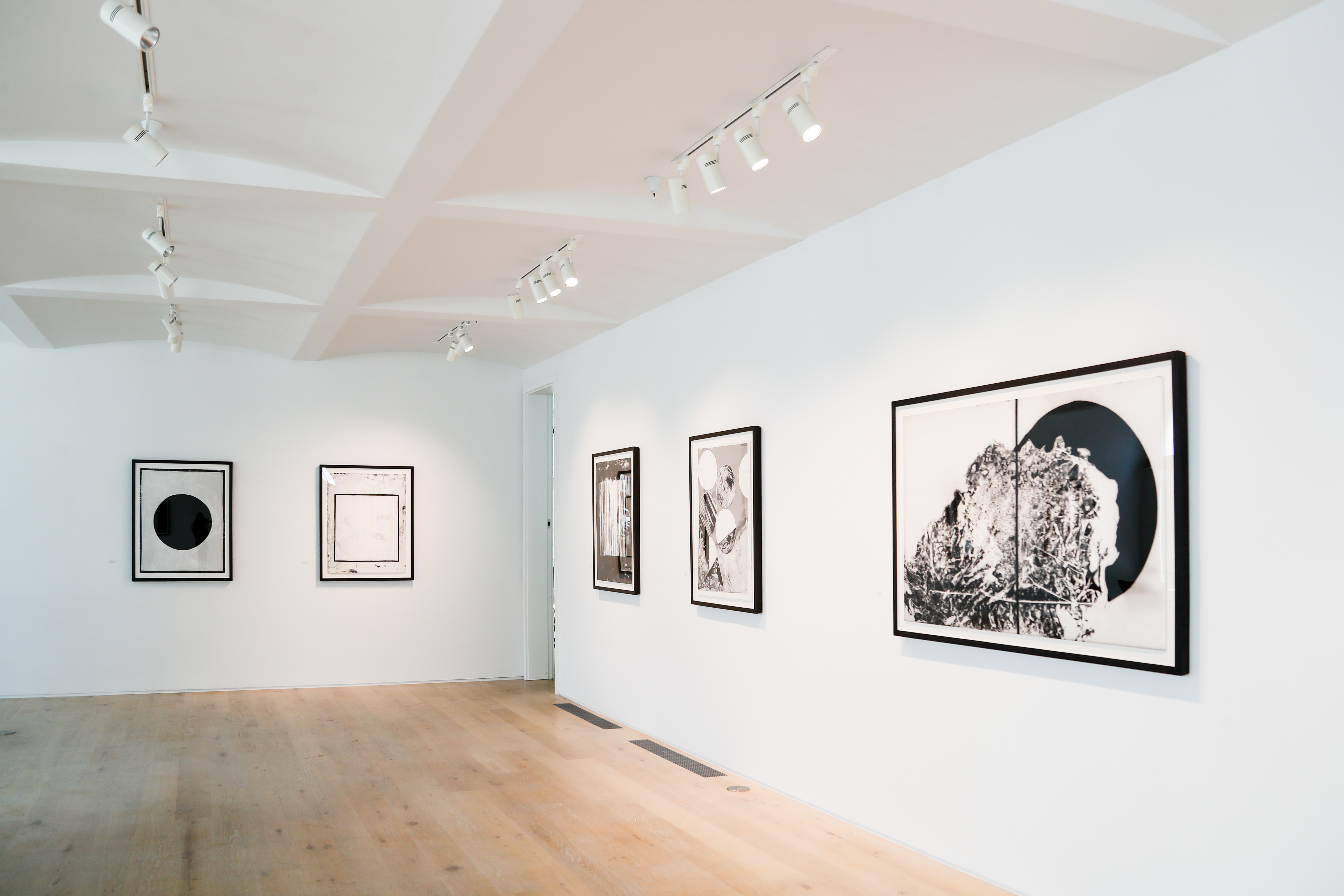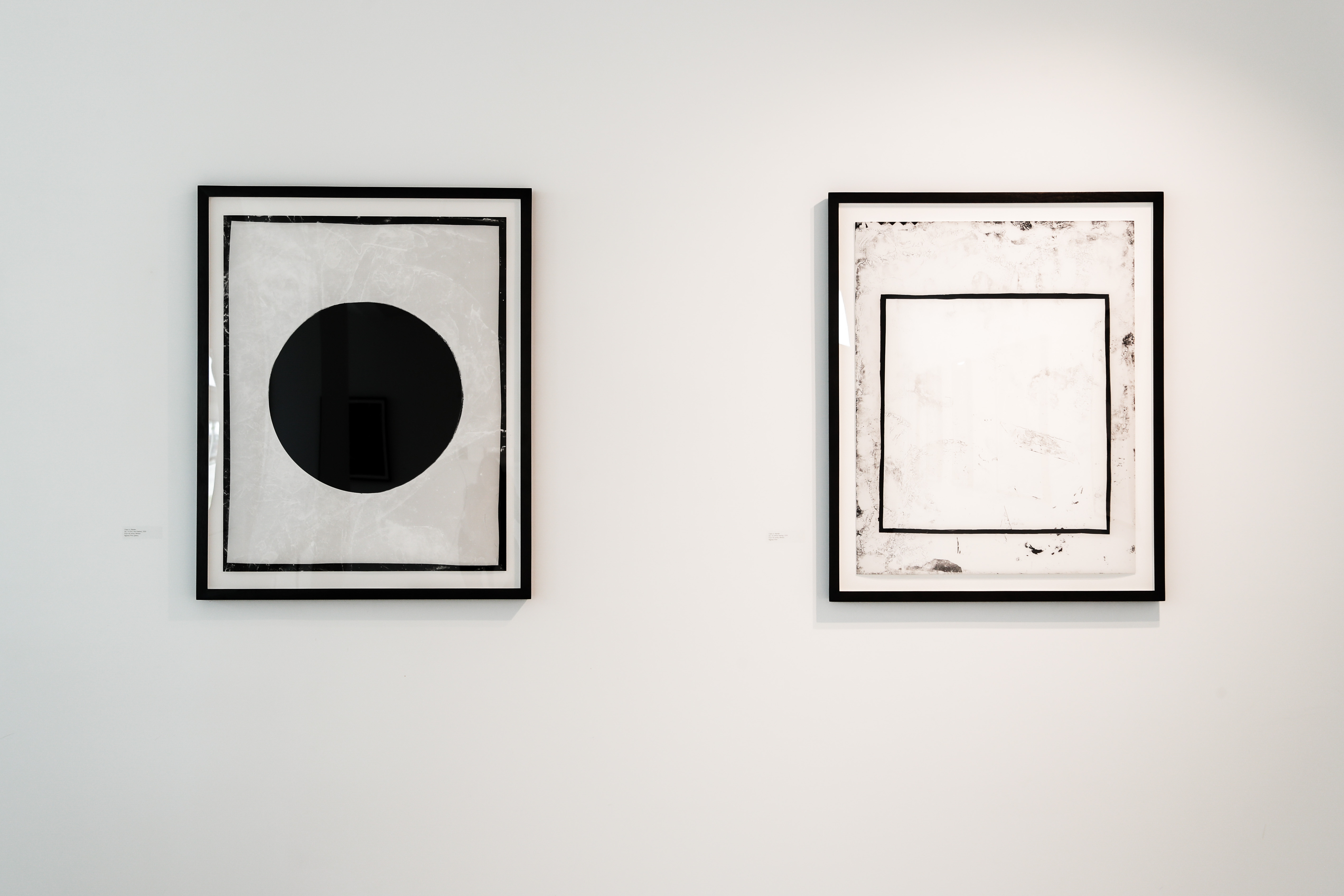 This exhibition was built to emphasize relationships between the pictures. Shown in pairs, the content of one photograph can illuminate its neighboring image. George Washington, Black Hills National Forest, shows the audacious scale that one group of people used to make a permanent mark on the sacred Lakota land of the Black Hills. The adjacent image, Eagle Feather, Medicine Wheel National Historic Landmark calls attention to a small trace left by another person, just as Sherwin found it the morning he went to photograph at Bighorn Medicine Wheel.